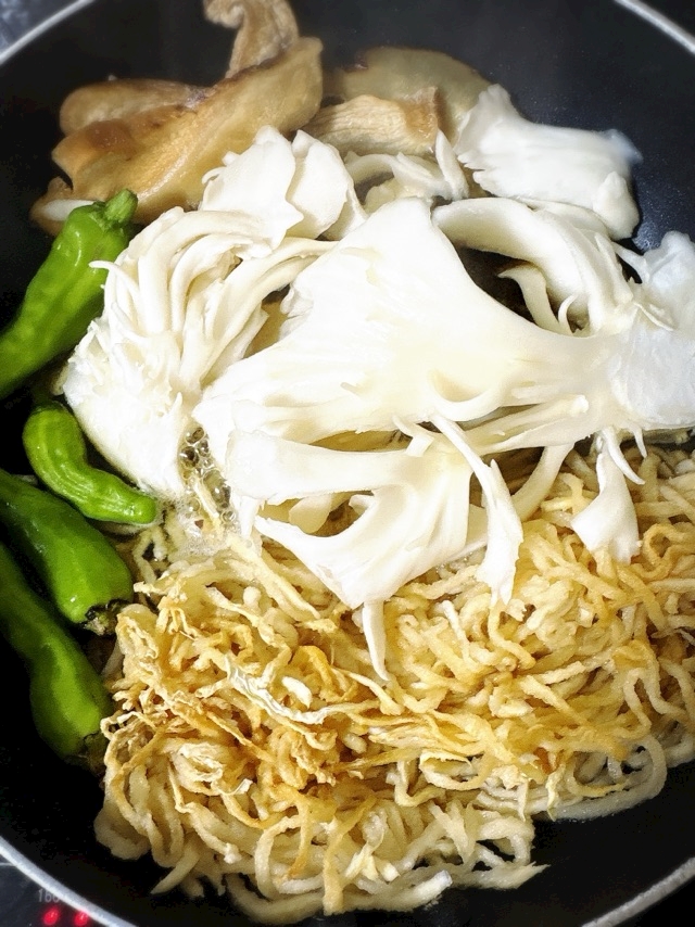 朝からヒラタケ煮物山盛りー...