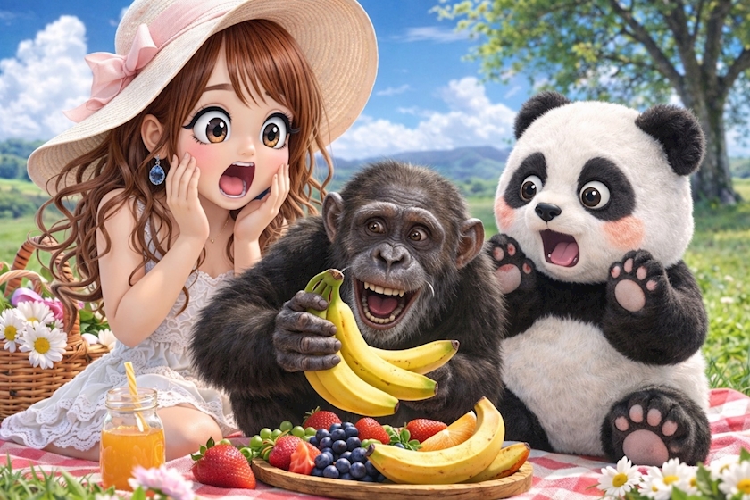 - ランランとお弁当食べてたらチンパンジーがぁ~⚠️🍌