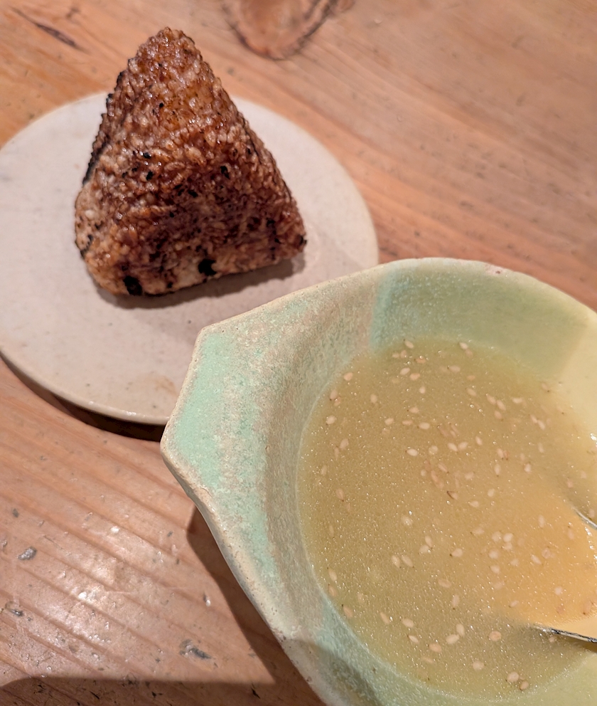 焼きおにぎりと鶏出汁スープ💛