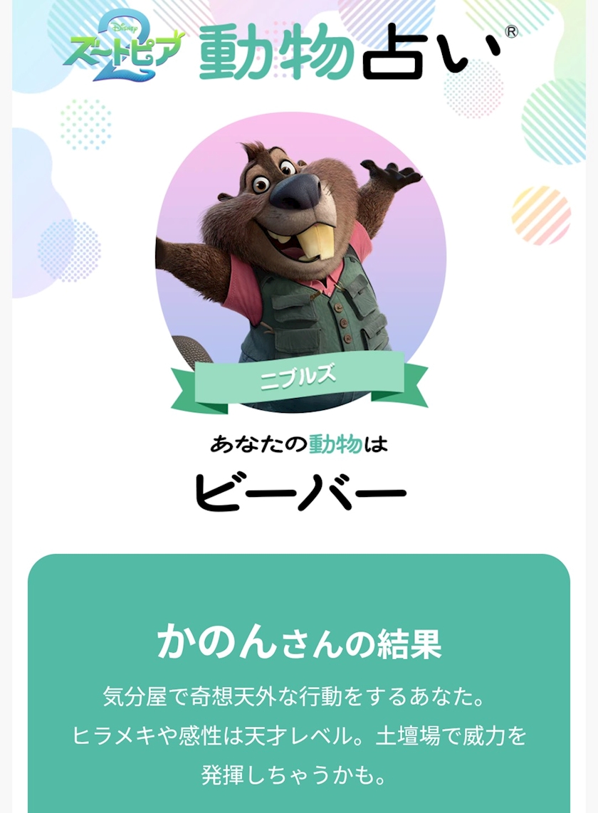 ズートピアの動物占い♪してる