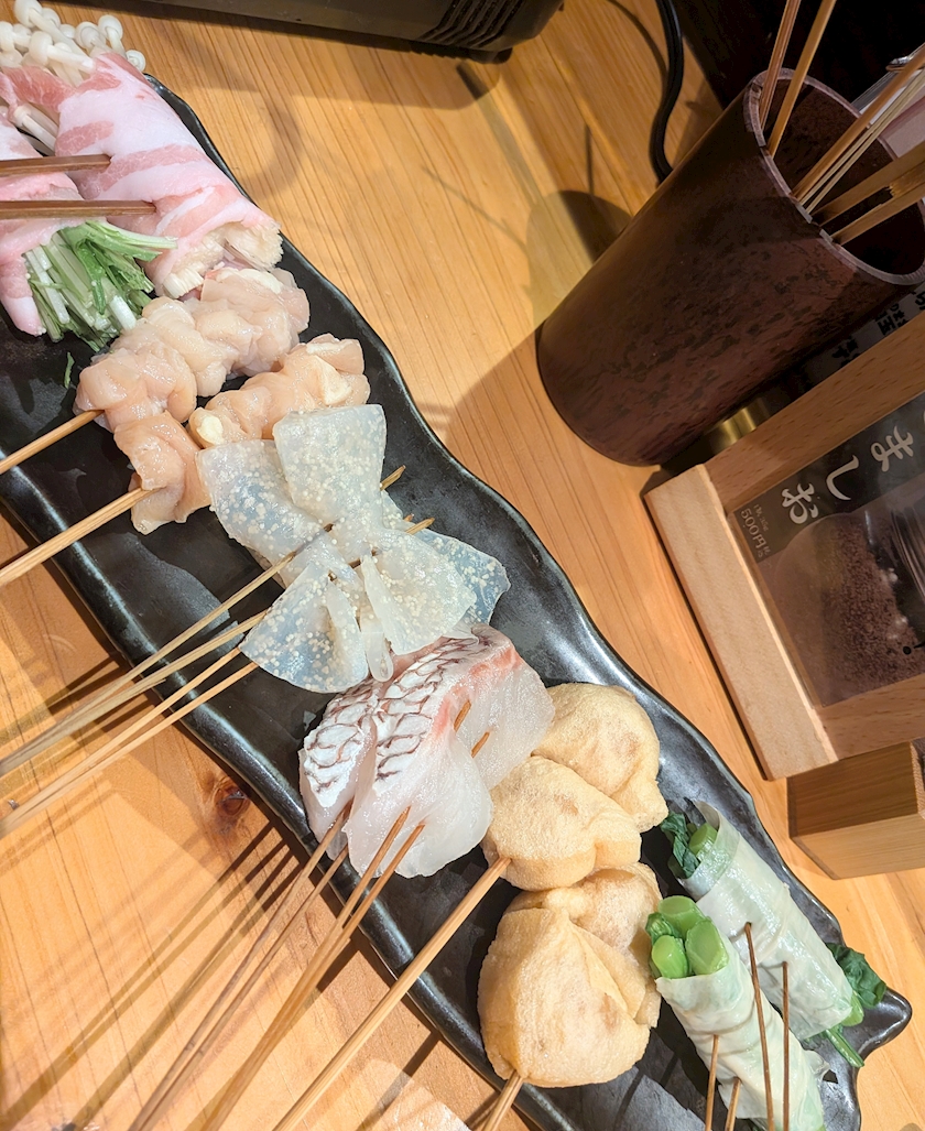 上ミノ、生麩、海老シソ、揚げ餅、筍
