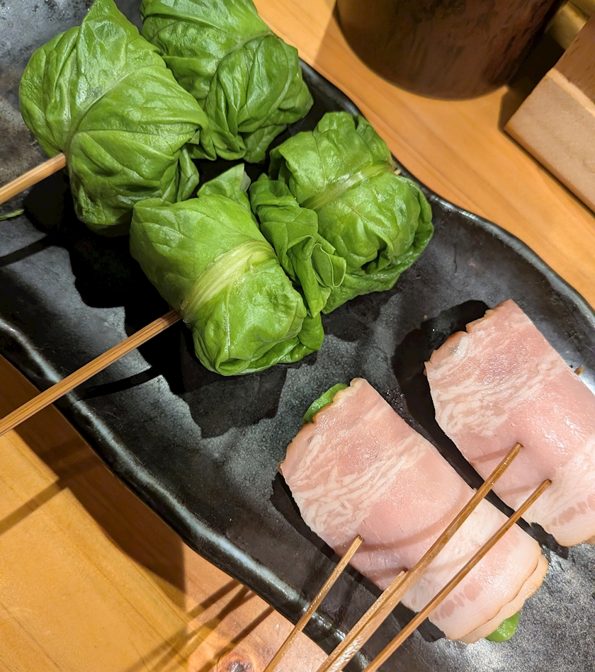 うずらレタス巻き、アスパラベーコン