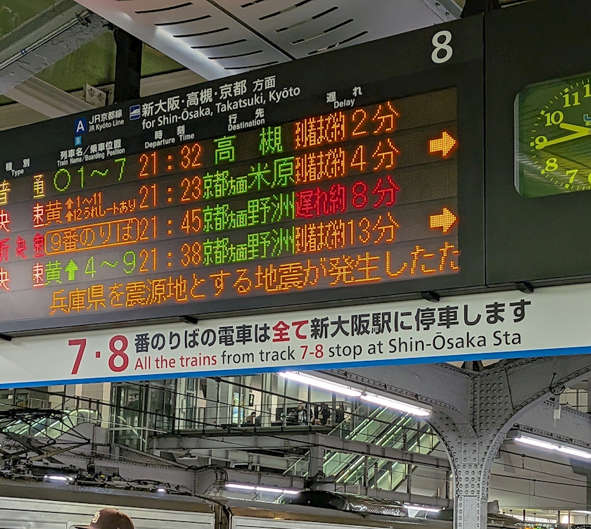 地震の影響で帰りの電車が遅延してた。