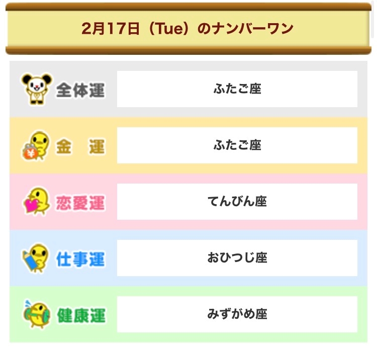 2月17日火曜日 今日の占い🔮