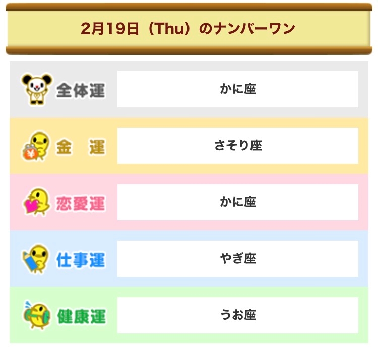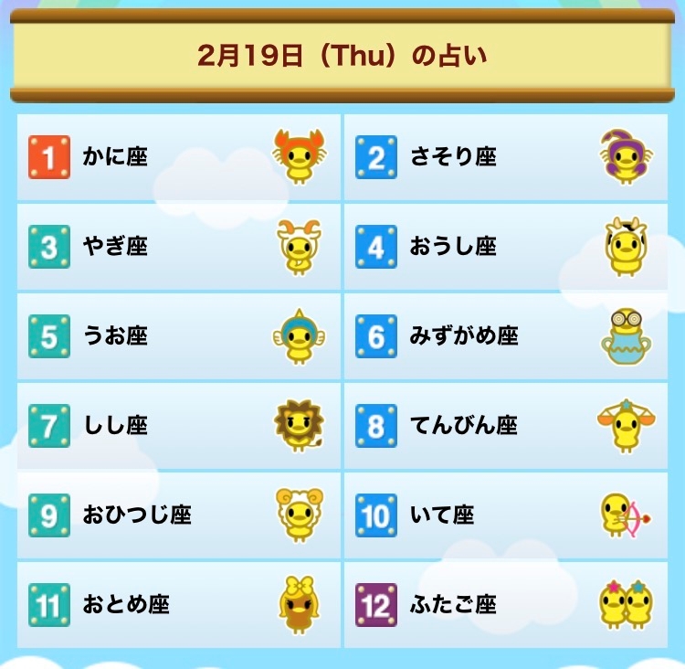2月19日木曜日 今日の占い🔮