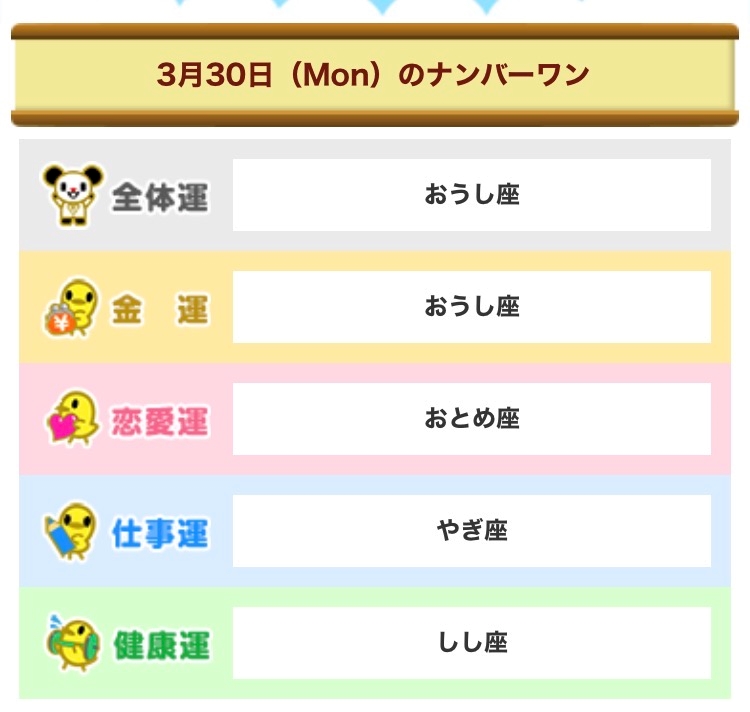 3月30日(月) 今日の占い🔮