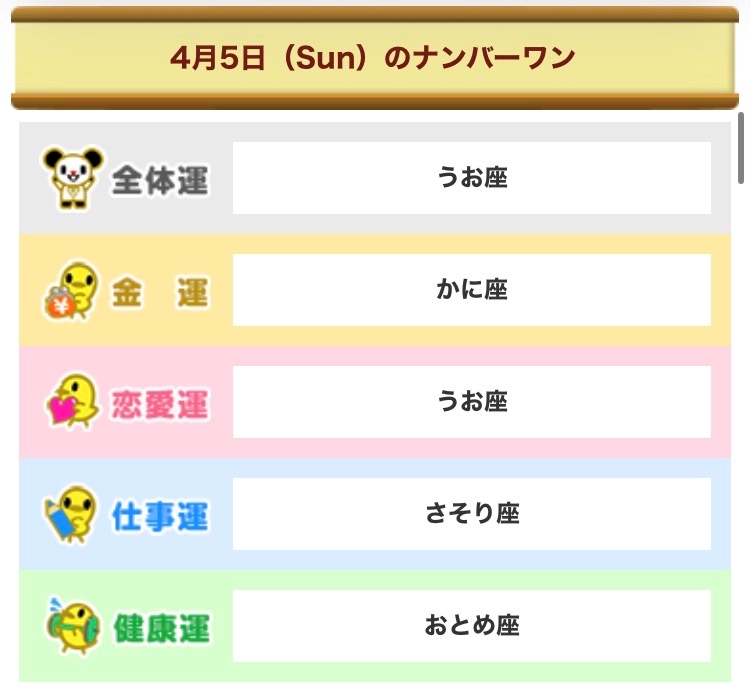 4月5日(日) 今日の占...
