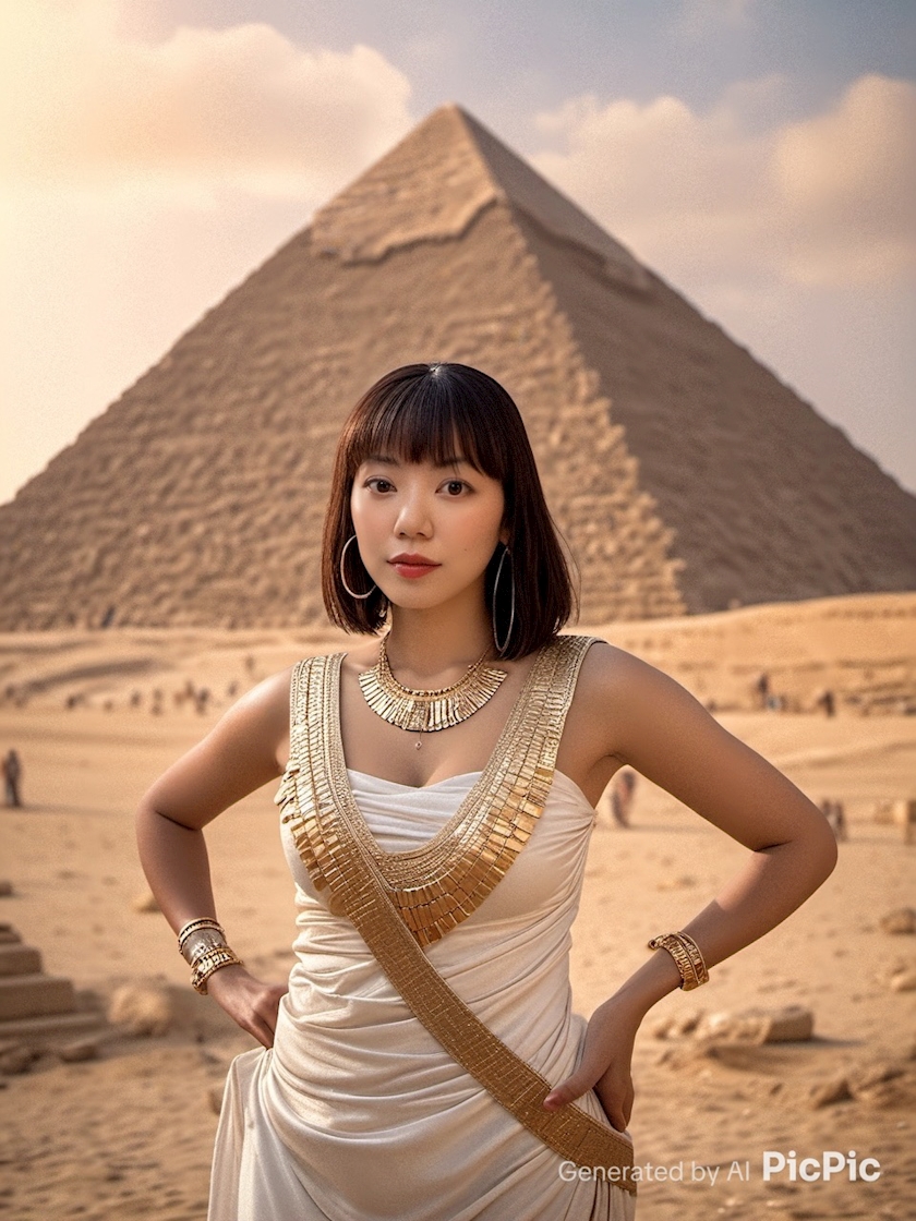 AIでエジプトのピラミッドを見るレイラ