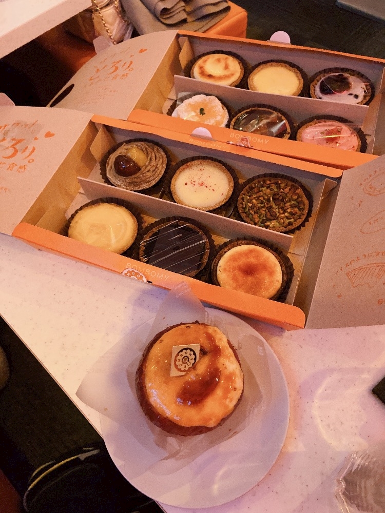 途中で可愛いタルトをいっぱい買って