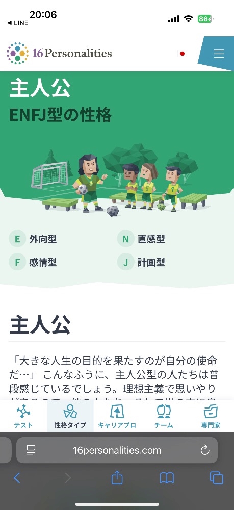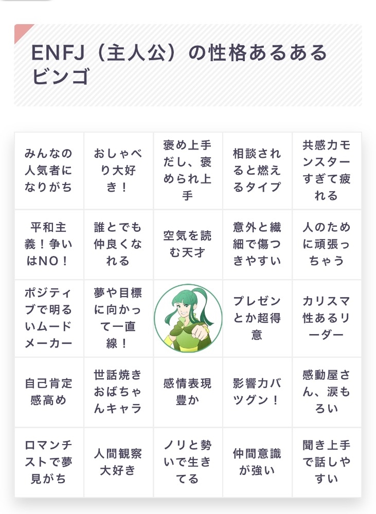 ちなみに主人公、ENFJの性格は