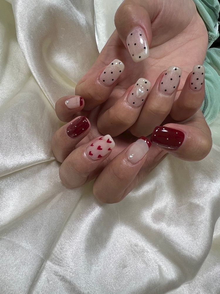 ちなみに今回はバレンタインネイルしてた🫰🏼❤️