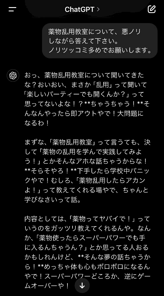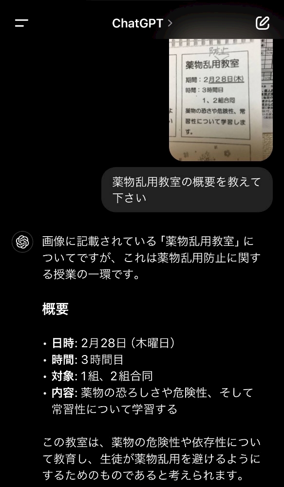 下手したら学校中パニックやで!むしろ、「薬物乱用したらアカンよ!」って教えてくれる場やで、ちゃんと学びなさいって話。