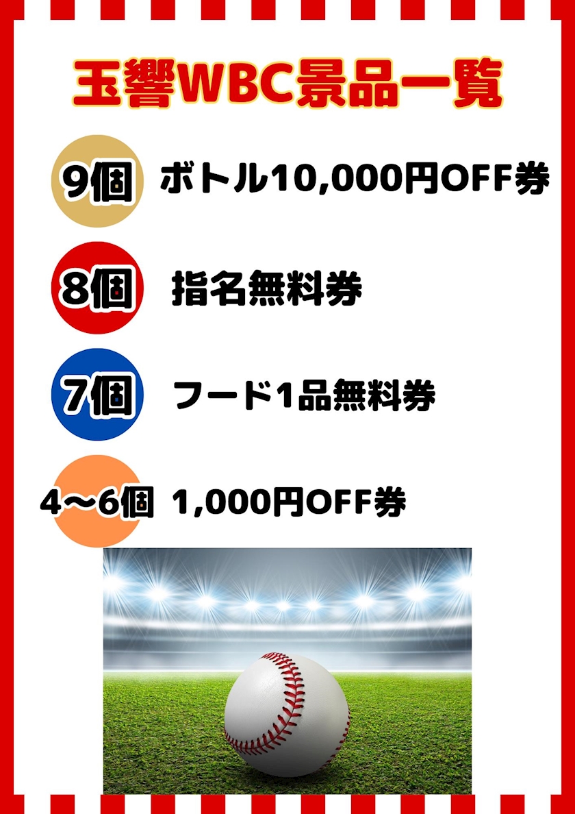本日から玉響WBCイベントです。 - 「玉響」よし - 梅田 熟女キャバクラ・玉響(たまゆら)