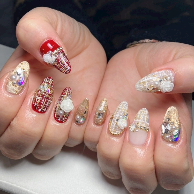 おめでたい紅白とゴールドのツイードで✨️