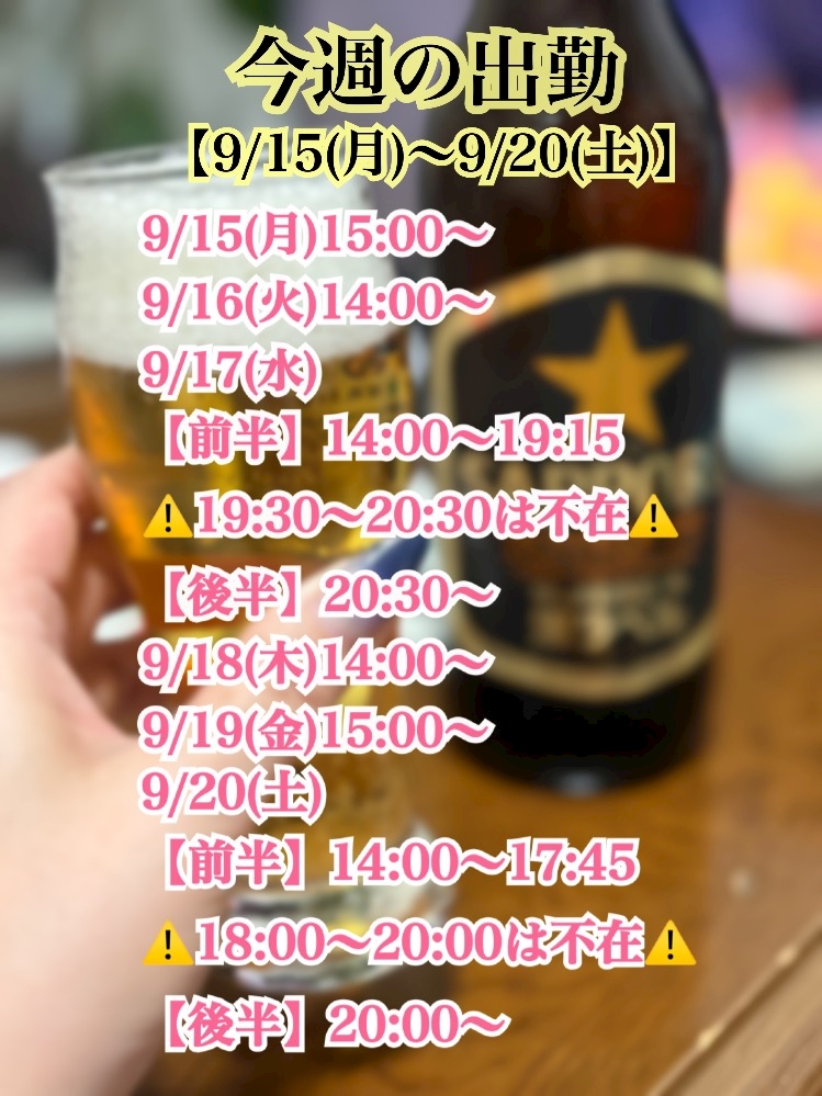 【次回出勤は9/20(土)14時〜】