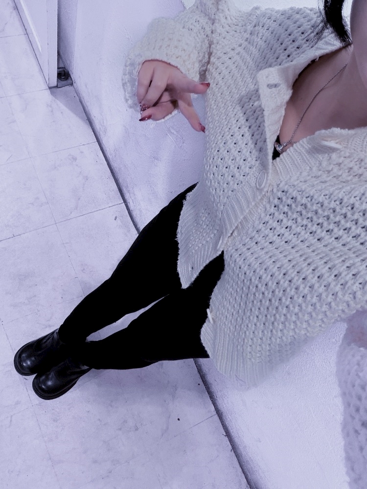 スキニーパンツにショート丈のダメージカーディガン羽織ってきた!