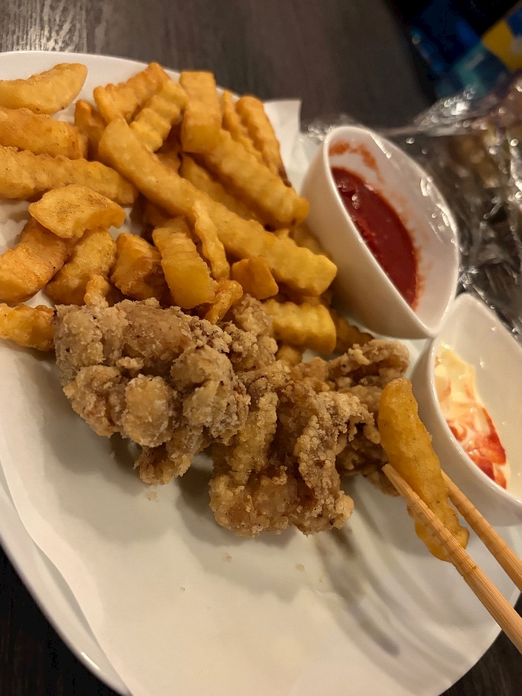 オーナーの美味しい唐揚げとポテトが残っちゃったから