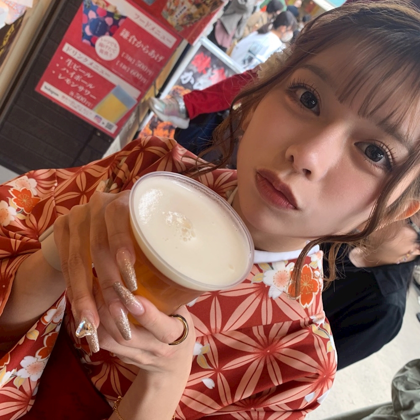 久しぶりに着物をきて🍻を片手に街をぶらぶら