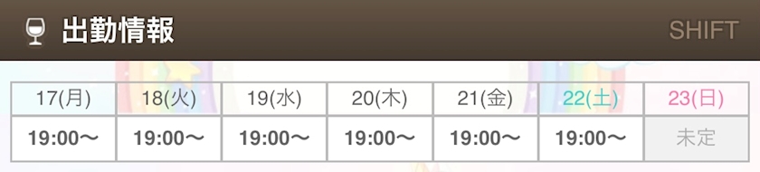 今週のシフト🤗