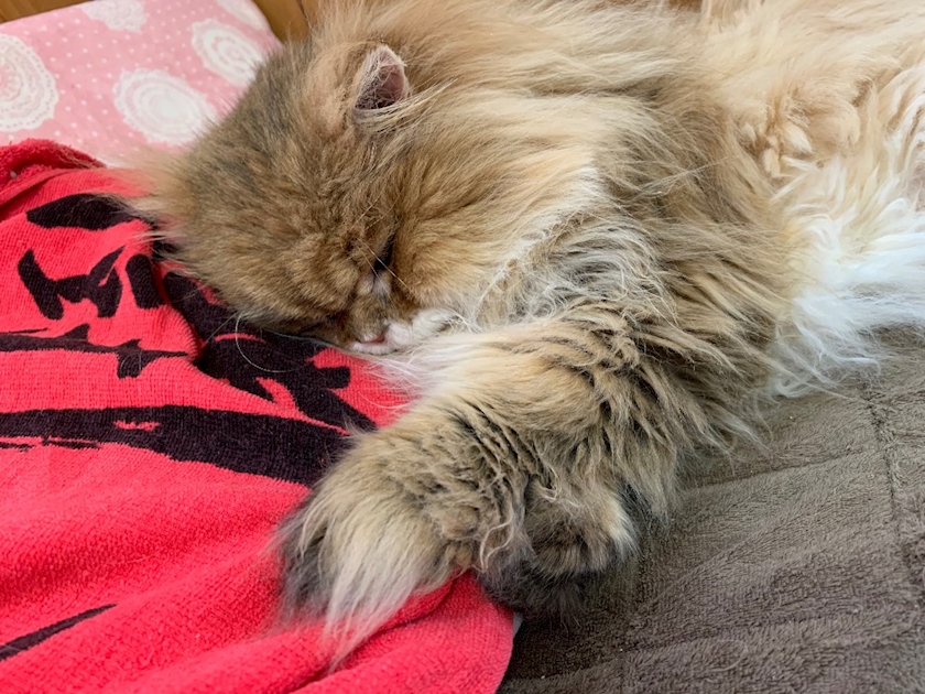 枕占領して爆睡中