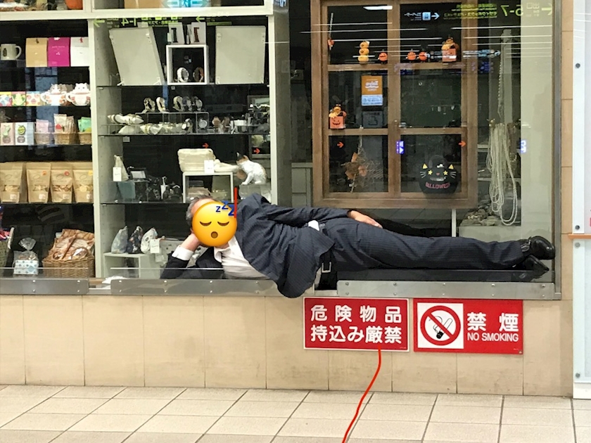 すんごい所で寝てるサラリーマン