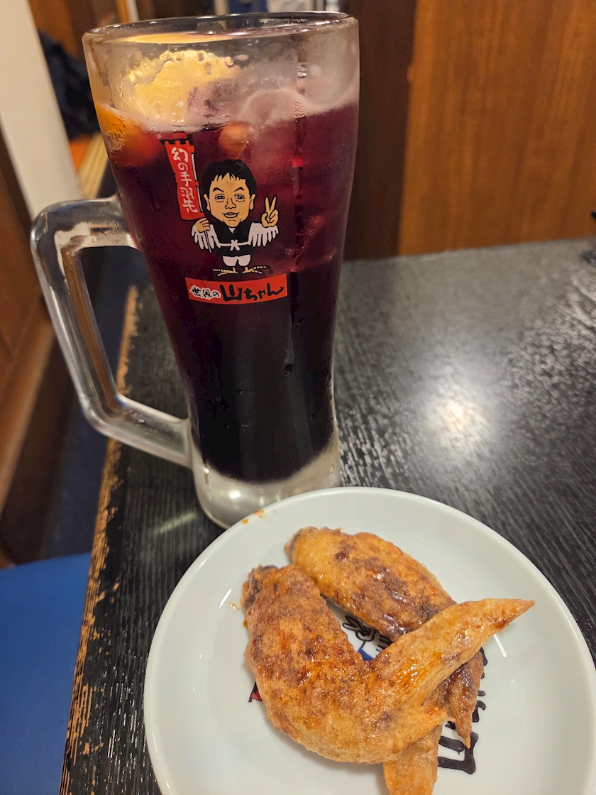 手羽先2本と濃い葡萄のハイボール