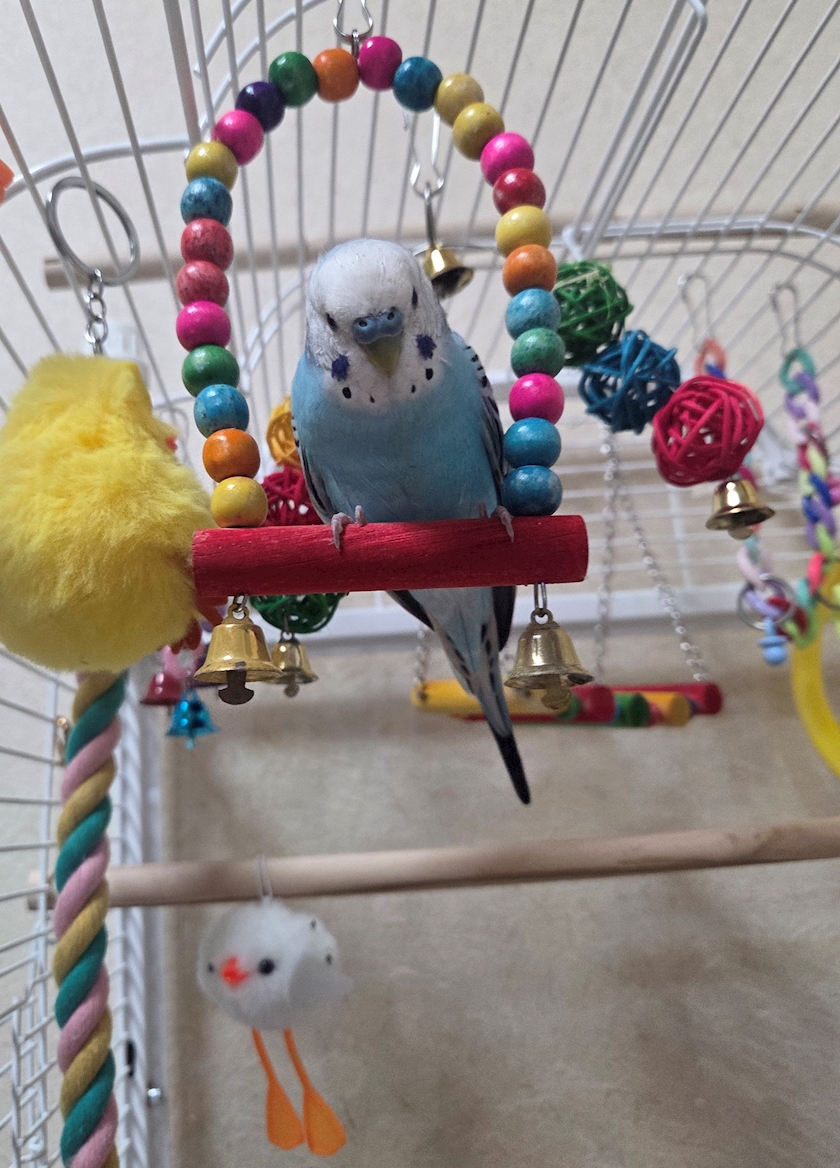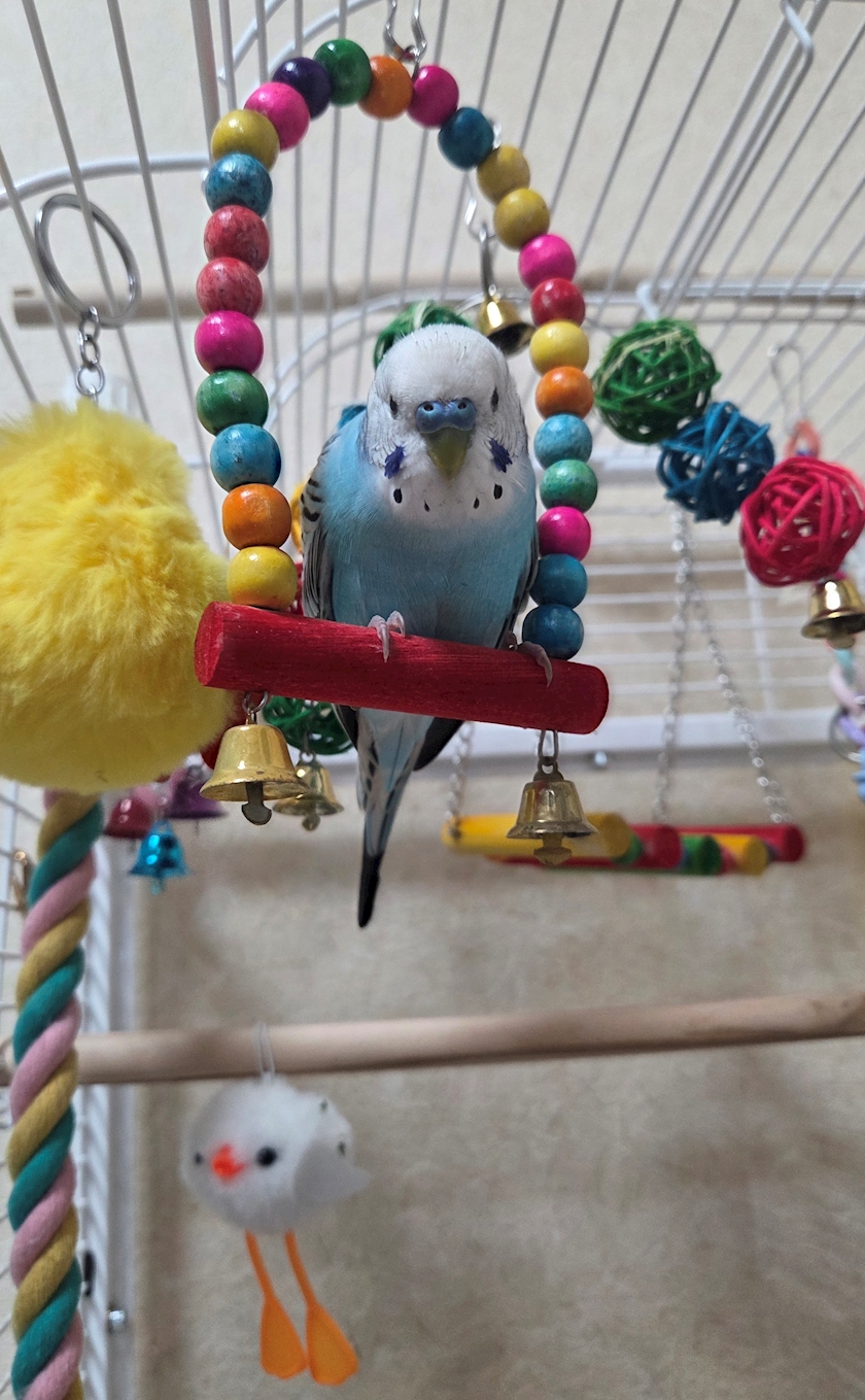 ケージの中でユラユラ揺れてご機嫌に喋ってる事が多いです