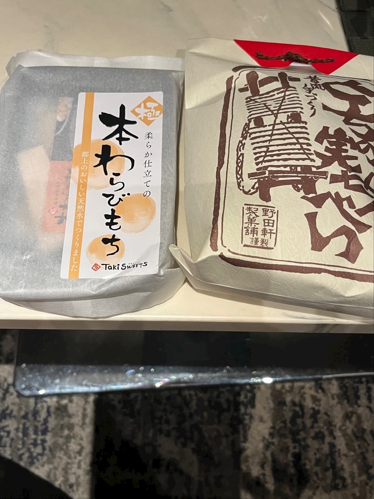 わらび餅ととちの実せんべい食べました