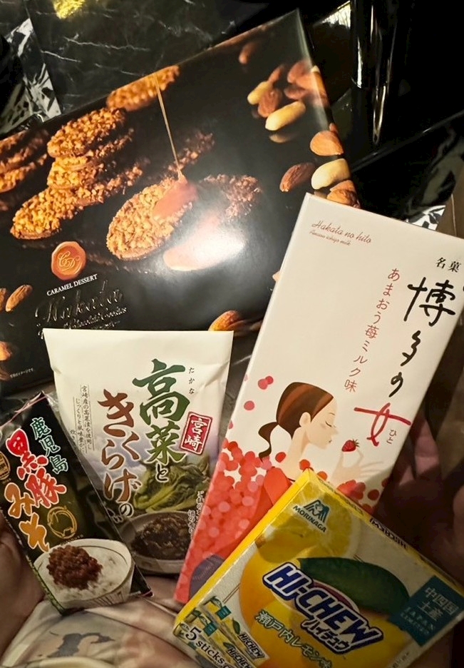 どこに行ってきたの~😳っていうくらいのたくさんのお土産😳嬉しい~😍どれも美味しすぎてもう食べてしまったんだけど、高菜ときくらげ個人的に取り寄せようかってくらい私も家の皆もハマってしまった😂💕🌸