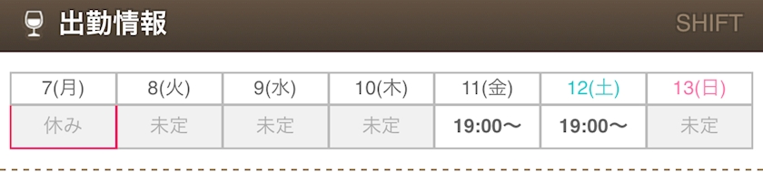 今週出勤予定🥂