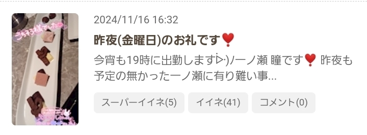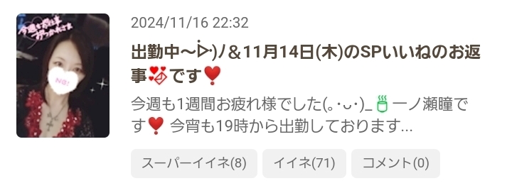 夜うどん&11月16日(土)のSPいいねのお返事💌です❣️ - 一ノ瀬 瞳 - Mrs.J 梅田・ミセス ジェイ ウメダ - 梅田の熟女パブ/熟女キャバクラ