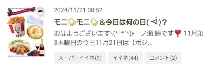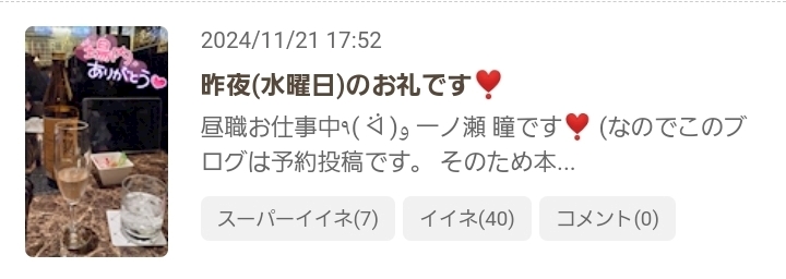 出勤中~ᐕ)ノ&11月21日(木)のSPいいねのお返事💌です❣️ - 一ノ瀬 瞳 - Mrs.J 梅田・ミセス ジェイ ウメダ - 梅田の熟女パブ/熟女キャバクラ