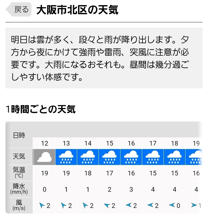大阪は午後から雨予報☔