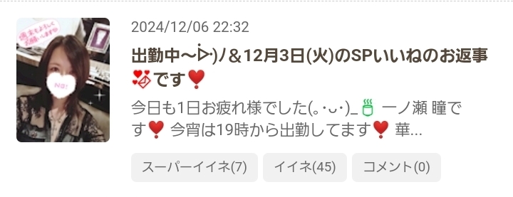 🎴🎋⚡️🐗🌊🔥🦋🎶🌫🐍💗🌪🪨&12月6日(金)のSPいいねのお返事💌です❣️ - 一ノ瀬 瞳 - Mrs.J 梅田・ミセス ジェイ ウメダ - 梅田の熟女パブ/熟女キャバクラ