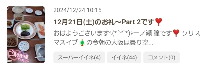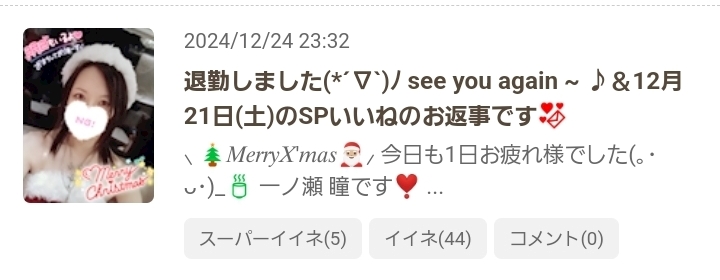 冷やし焼き芋&12月24日(火)のSPいいねのお返事💌です❣️ - 一ノ瀬 瞳 - Mrs.J 梅田・ミセス ジェイ ウメダ - 梅田の熟女パブ/熟女キャバクラ