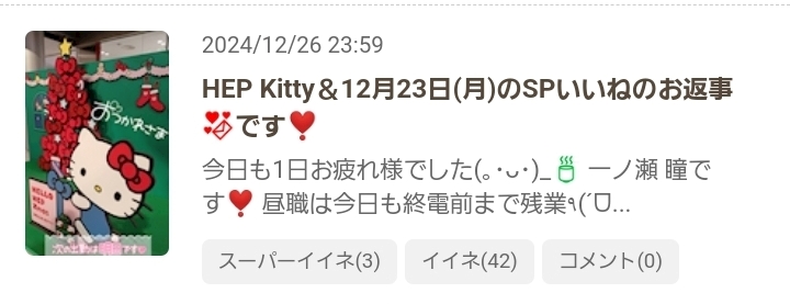 今年ラスト出勤中~ᐕ)ノ&12月26日(木)のSPいいねのお返事💌です❣️
