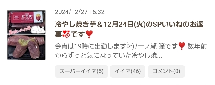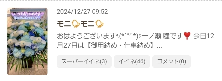 今週のシフトᐕ)ノ&12月27日(金)のSPいいねのお返事💌です❣️ - 一ノ瀬 瞳 - Mrs.J 梅田・ミセス ジェイ ウメダ - 梅田の熟女パブ/熟女キャバクラ