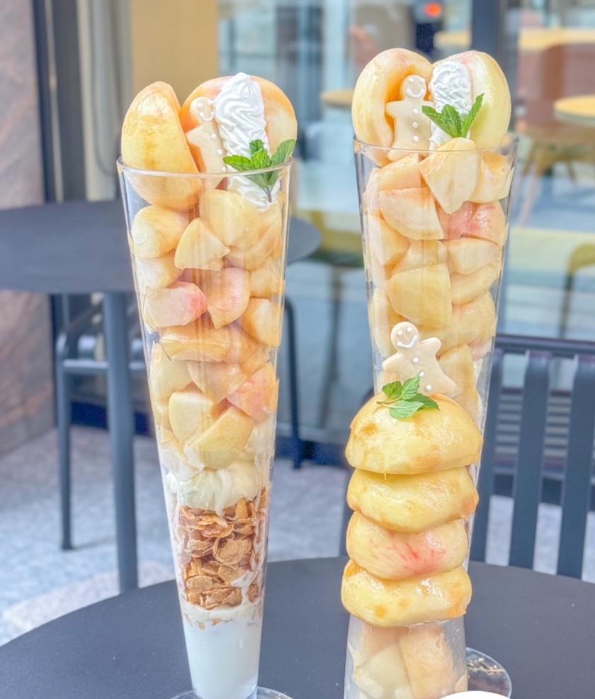 桃4個使ったパフェで