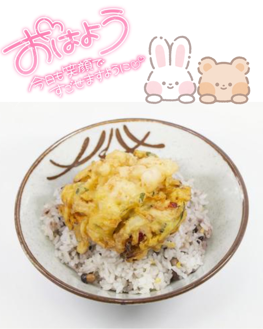 丸いかき揚げをのせて