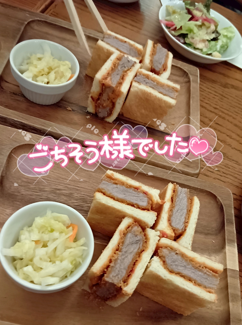 (あっ!下⬇のカツサンド写真の上の方に取り分けたサラダが小さく載ってます🤭)