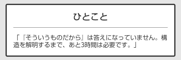 “納得する答えが出るまで一歩も引かない理屈屋"
