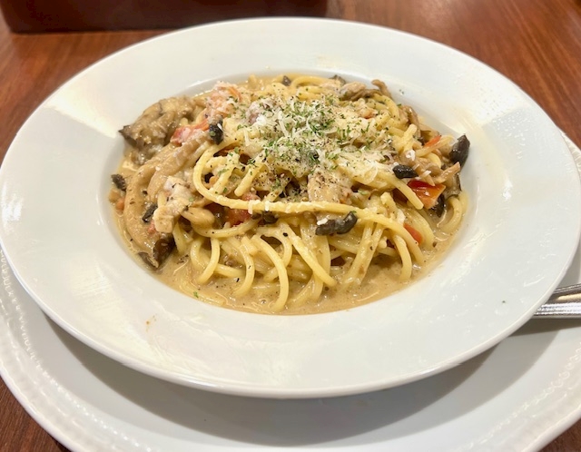 朝からポルチーニスパゲティ