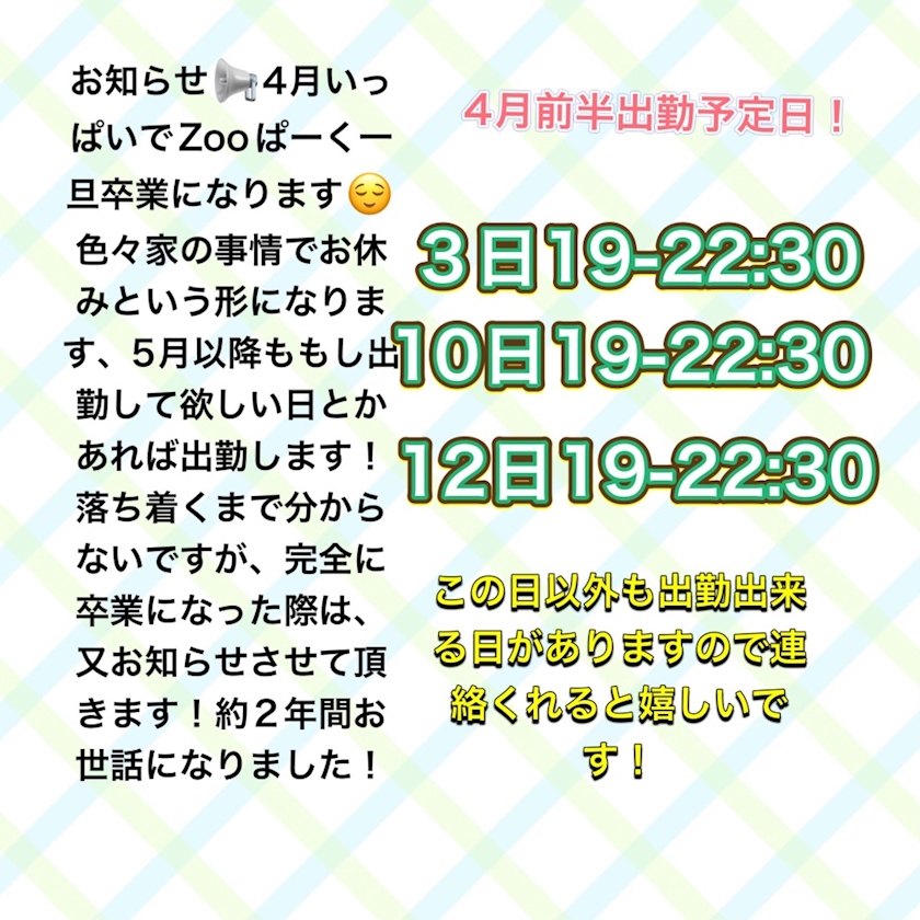 お知らせ - あやの - Cafe&Bar ZOOぱーく・カフェアンドバー ズーパーク - 梅田 堂山町のコンカフェ