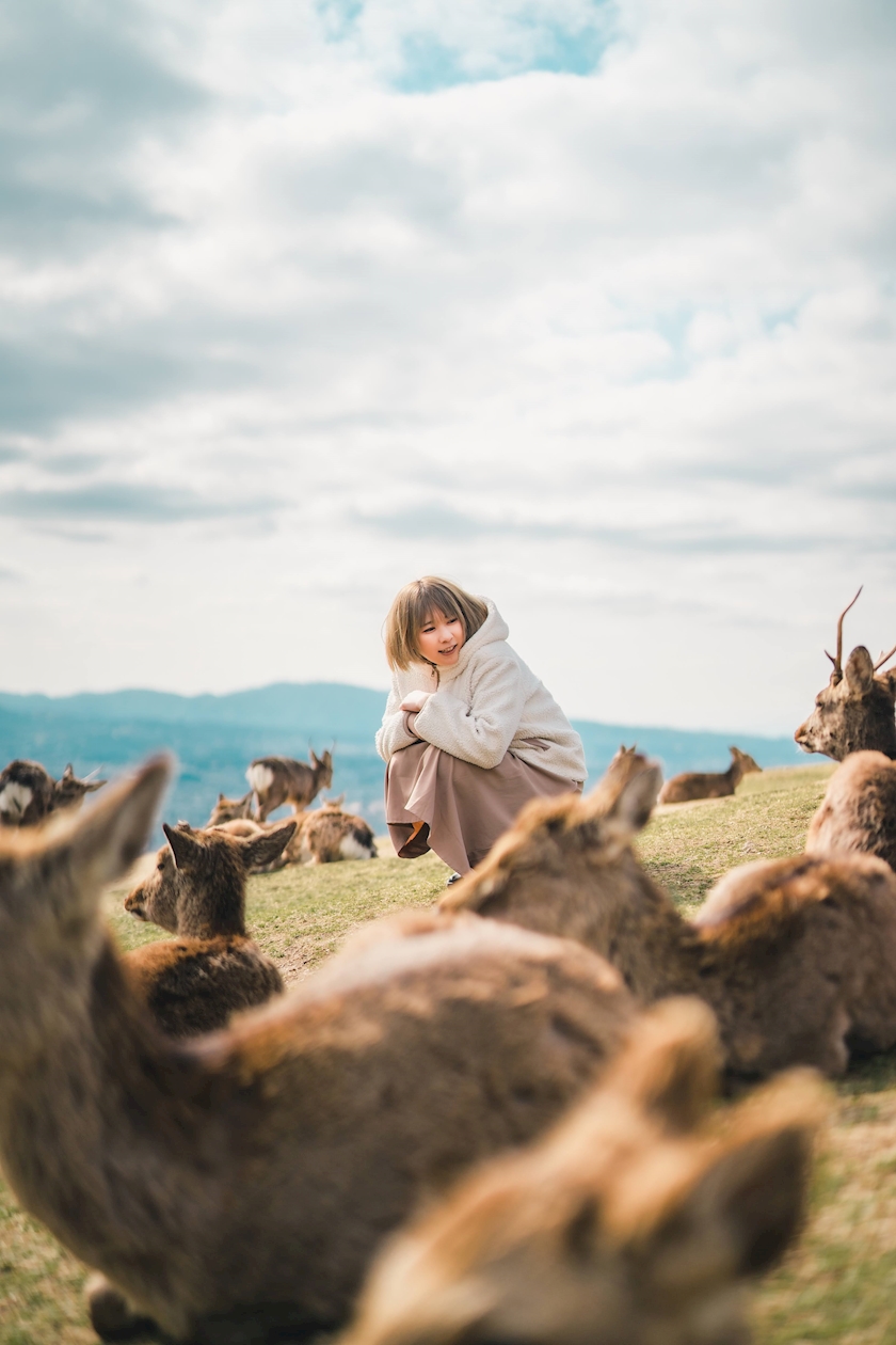 鹿に囲まれていた頃のななみんです