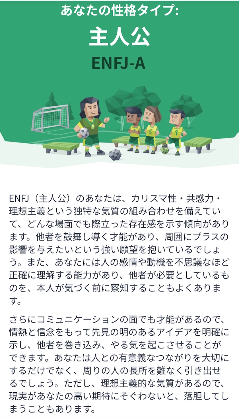 たぶんプライベートはENFPで仕事ではENFJって感じでしょう