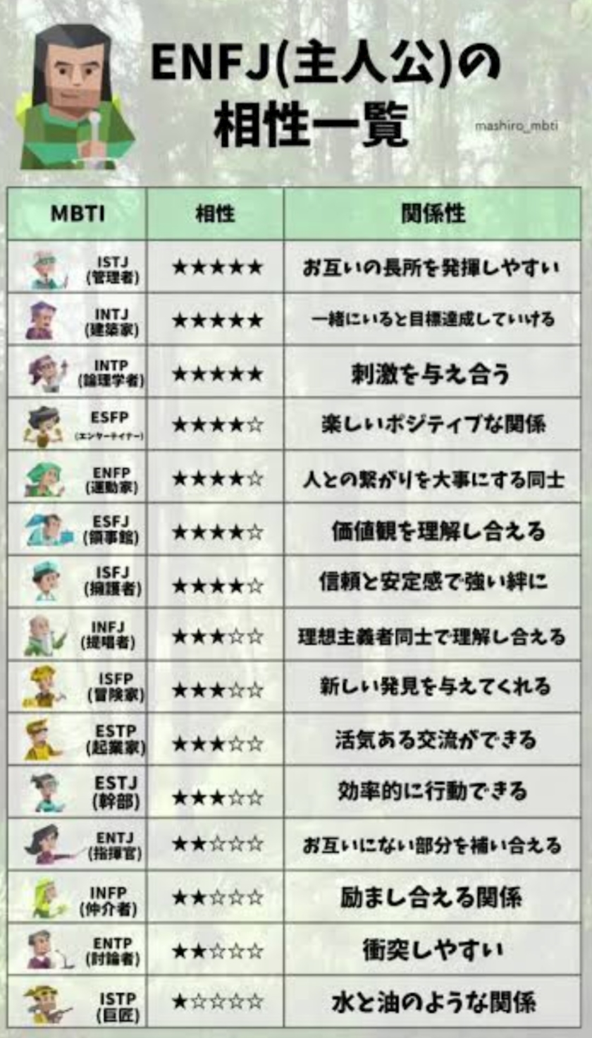 ENFPからENFJになりました☝️笑