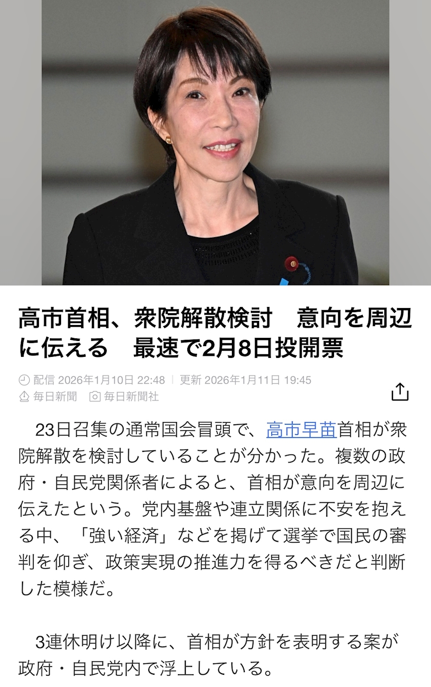 次の常会で衆議院を解散させるかもしれない