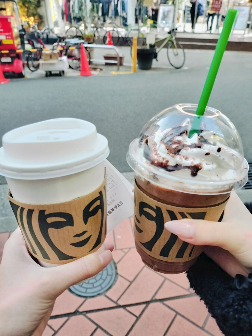 あったかいスタバ飲みながら元気注入‼️