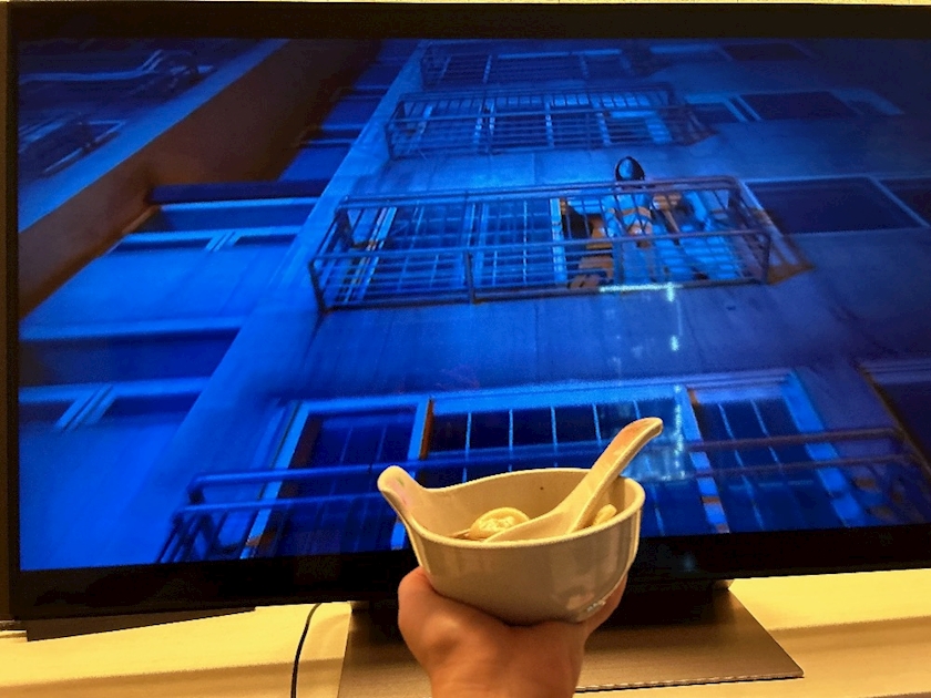 今、ホラー映画を見ながら、、