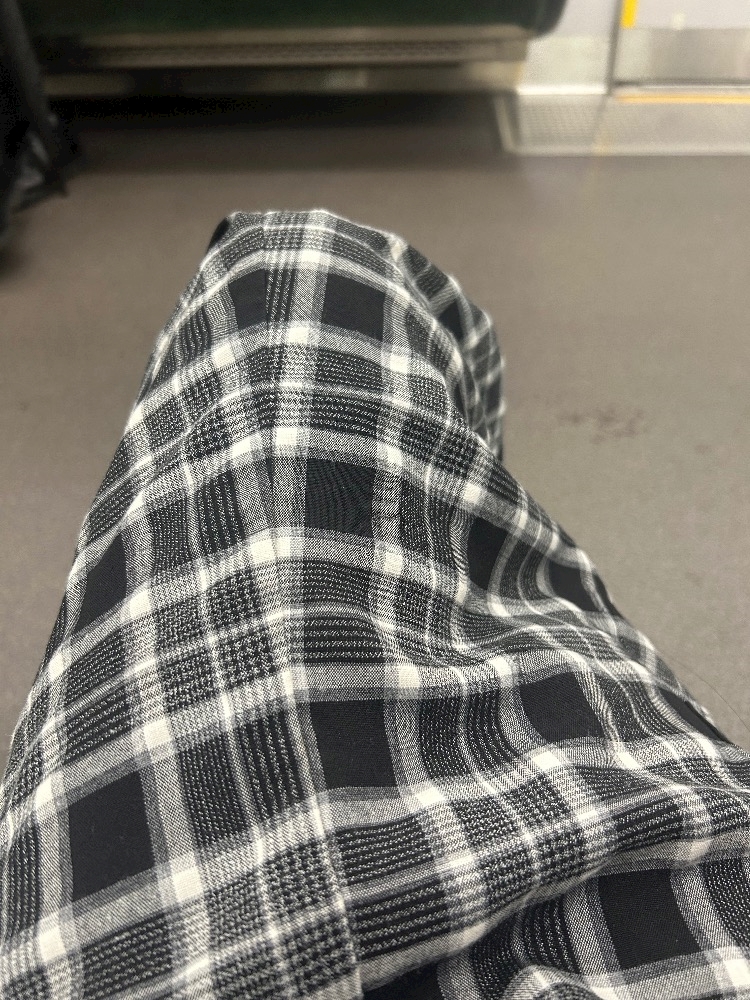 電車に乗る熟女の左足を